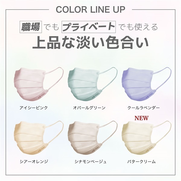 淡く上品な色合いのカラーマスク。さまざまなシーンやファッションに合う豊富な色合いを揃えております。