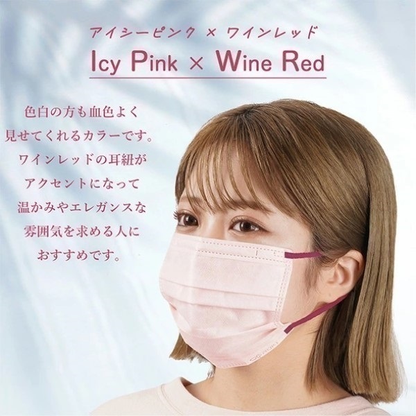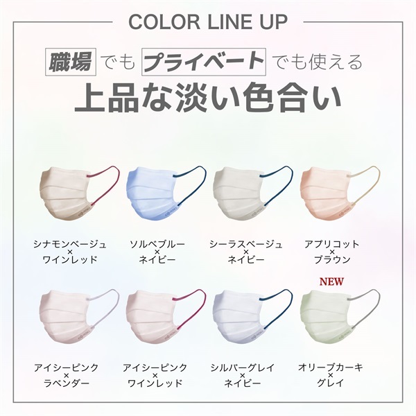 バイカラーマスクは耳ひものアクセントがコーディネートを引き立てて、おしゃれな印象を与える一押しアイテムです。さまざまなシーンやファッションに合う豊富な色合いを揃えております。