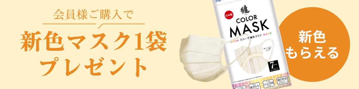 期間中に会員ログインしてご購入いただきますと、新色の「纏 カラーマスク7枚入 バタークリーム」1袋をプレゼントいたします。