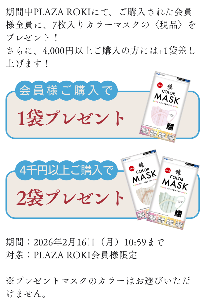 今後ともPLAZA ROKIスタッフ一同、皆様にお喜びいただける商品ならびにサービスを提供して参りますので、一層のご愛顧を賜りますよう何卒宜しくお願い申し上げます。
