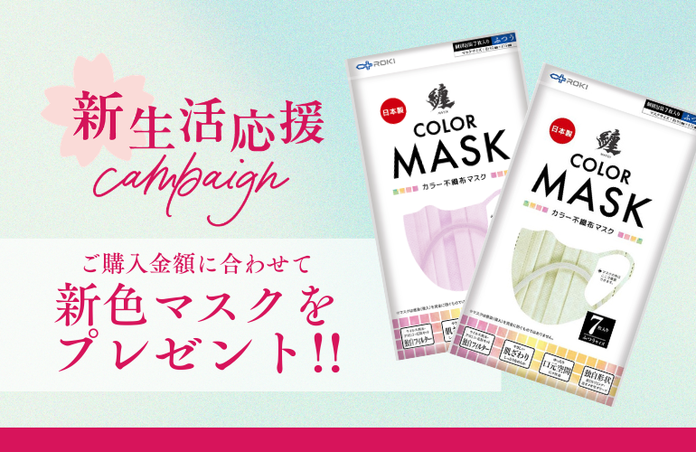 期間中、PLAZA ROKI会員の方を対象に、ご購入金額に応じて新色マスク(ライラックorオリーブカーキorバタークリームorシナモンベージュ×ブラウン)をプレゼントいたします。